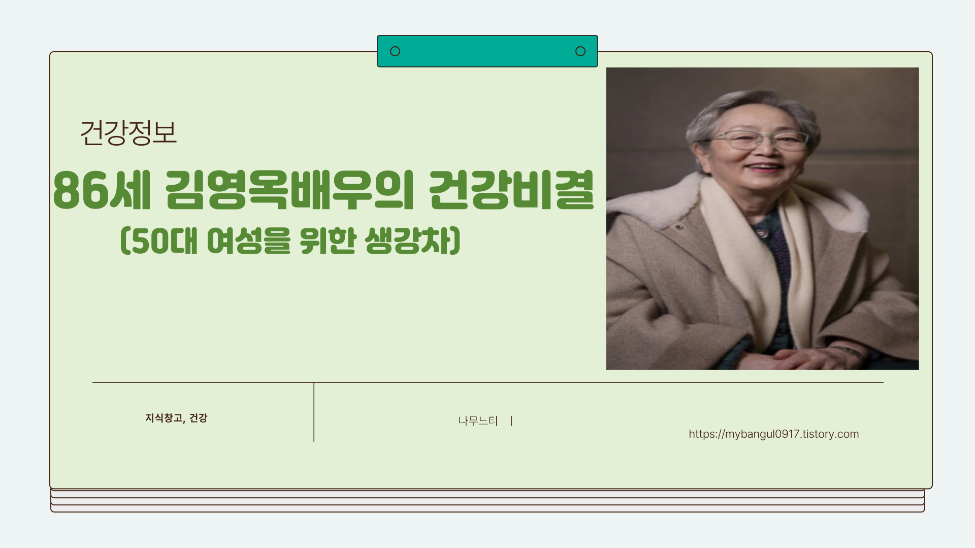 "86세 김영옥 배우의 건강비결"/ 생강차 마시기50대 이후 건강 관리가 중요한 시기입니다. 특히 면역력 강화와 혈액순환 개선에 좋은 생강차는 중년 여성들에게 필수 음료로 꼽힙니다. 최근 86세 김영옥 배우가 밝힌 건강 비결 또한 생강차라고 알려져 더욱 주목받고 있습니다. 그녀는 어떻게 건강을 유지하는지, 그리고 생강차가 왜 50대 여성에게 좋은지 알아보겠습니다.1. 86세 김영옥 배우의 건강 비결: 생강차의 효과86세에도 활발한 활동을 이어가고 있는 김영옥 배우는 꾸준한 자기 관리로 건강을 유지하고 있습니다. 그녀의 건강 비결 중 하나로 꼽히는 것이 바로 생강차입니다.김영옥 배우는 여러 인터뷰에서 건강을 위해 꾸준히 따뜻한 차를 마신다고 밝혔으며, 특히 생강차가 몸을 따뜻하게 해 주고 면역력을 높이는 ..