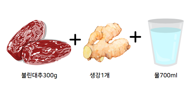 준비물: 불린대추 300g + 생강1개 + 물700ml