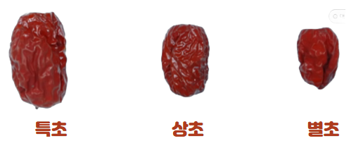 대추는 크기별로 특초/ 상초/ 별초로 나눈다